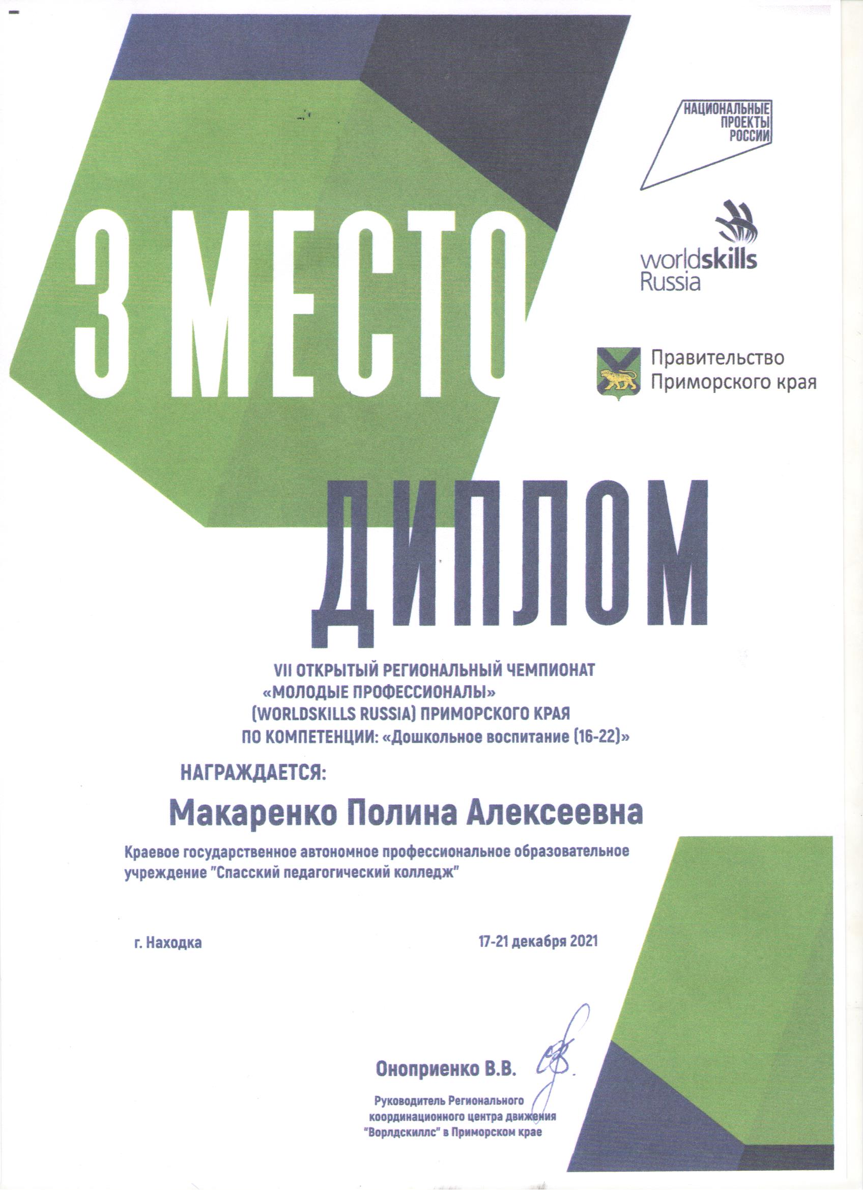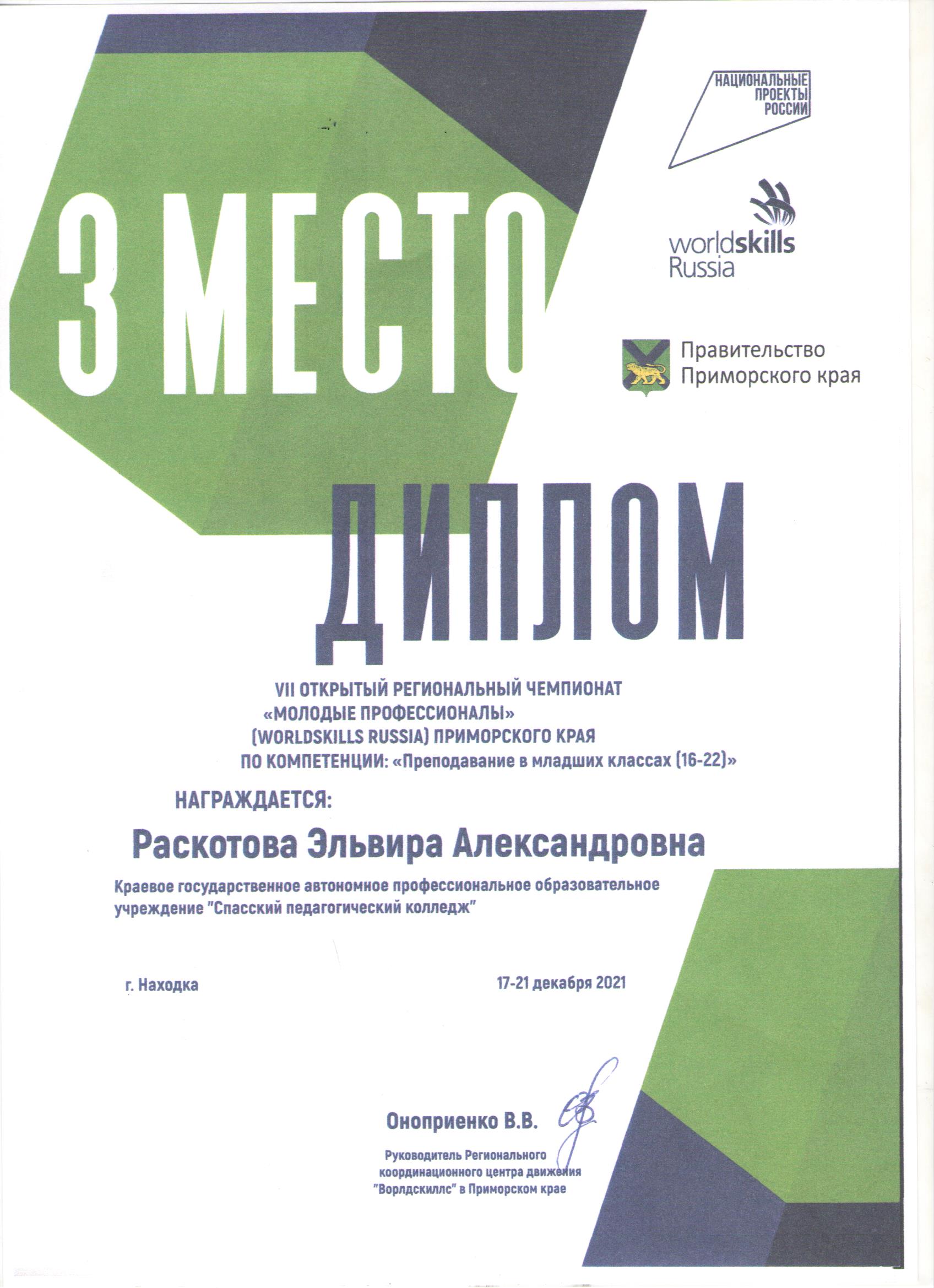 С 17 по 21 декабря 2021 года в Приморском крае прошёл VII Региональный Чемпионат «Молодые профессионалы» (WorldSkillsRussia).